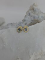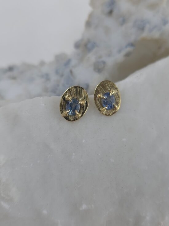 Αυτά τα σκουλαρίκια αποπνέουν διαχρονική κομψότητα και φινέτσα. Είναι κατασκευασμένα από χρυσό Κ14, με κεντρικά φυσικά οβάλ ζαφείρια σε μπλε απόχρωση, τα οποία πλαισιώνονται από ανάγλυφο περίγραμμα. Το κλασικό τους σχέδιο τα καθιστά ευκολοφόρετα για όλες τις ώρες της ημέρας, προσδίδοντας μια διακριτική λάμψη και χρώμα σε κάθε εμφάνιση.