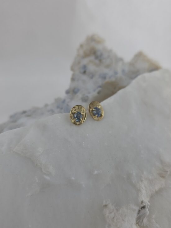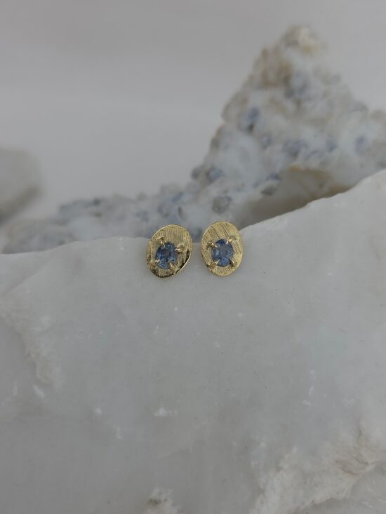 Διαχρονικά σκουλαρίκια από χρυσό Κ14 με φυσικά μπλε ζαφείρια.