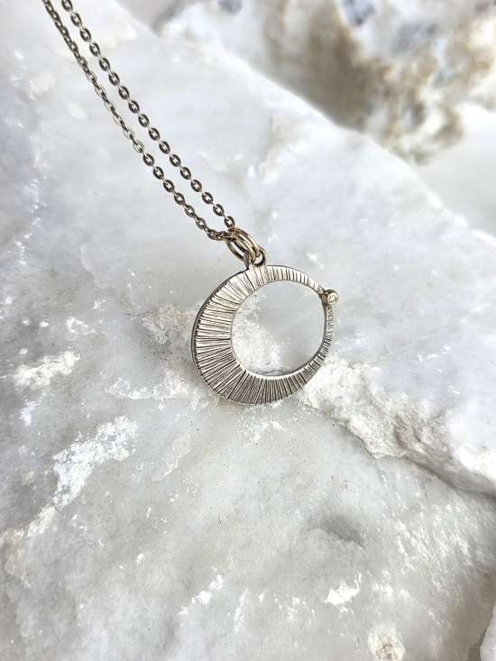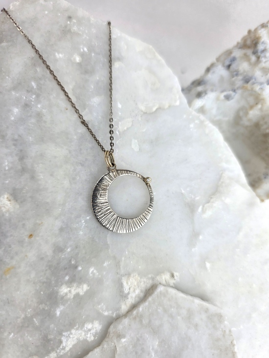 Εντυπωσιακό κρεμαστό με ανάγλυφη υφή από ασήμι 925 και χρυσό Κ14, με διακριτικό φυσικό διαμάντι.