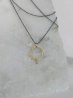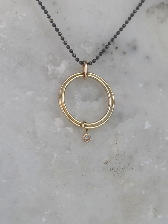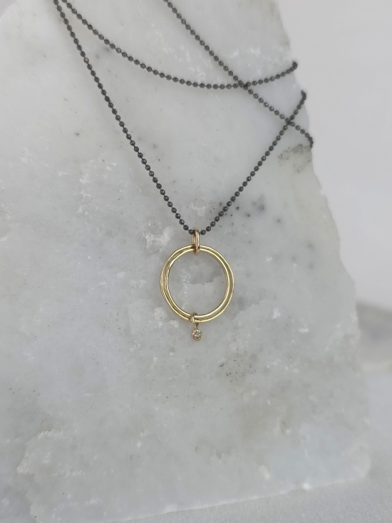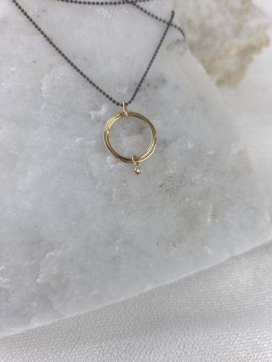 Ένα κρεμαστό ιδανικό για εσάς  που αγαπάτε τα minimal κοσμήματα, υψηλής αισθητικής και κομψότητας. Είναι κατασκευασμένο από χρυσό Κ14 και διακοσμημένο με ένα διακριτικό διαμάντι στο τελείωμα, το οποίο συνδυάζεται τέλεια με την οξειδωμένη αλυσίδα από ασήμι 925.