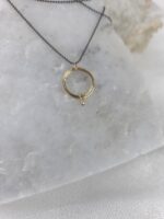 Minimal κρεμαστό από χρυσό Κ14, με φυσικό tiny διαμάντι. Η οξειδωμένη αλυσίδα από ασήμι 925 περιλαμβάνεται στην τιμή.
