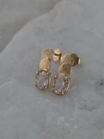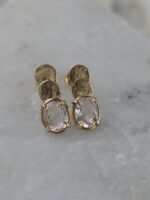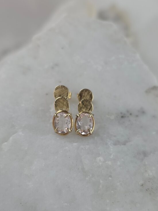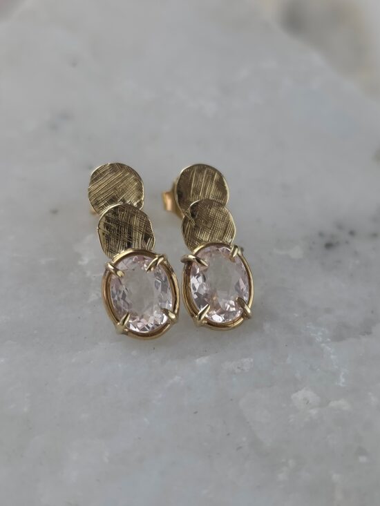 Μοναδικά σκουλαρίκια από χρυσό Κ14 που μαγνητίζουν το βλέμμα. Ένας εντυπωσιακός μοργκανίτης συνδυάζεται άψογα με το χρυσό και την ιδιαίτερη υφή του μετάλλου, δημιουργώντας ένα ξεχωριστό και μοντέρνο αποτέλεσμα. Ένα κόσμημα που προσφέρει πολυτέλεια και στυλ σε κάθε περίσταση.