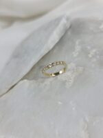 Ανακαλύψτε το απόλυτο σύμβολο αιώνιας δέσμευσης και κομψότητας. Αυτό το εκπληκτικό δαχτυλίδι σε χρυσό Κ14 διαθέτει μια σειρά από αστραφτερά, στρόγγυλης κοπής διαμάντια συνολικού βάρους 0,20 ct. Πρόκειται για ένα κόσμημα που συνδυάζει την κλασική γοητεία με τη διαχρονική αξία. Αυτό το δαχτυλίδι μιλάει κατευθείαν στην καρδιά, υπενθυμίζοντας ότι κάποιες ιστορίες αγάπης δεν τελειώνουν ποτέ. Ιδανικό για να σηματοδοτήσει σημαντικά ορόσημα, όπως επετείους ή τη γέννηση ενός παιδιού.
