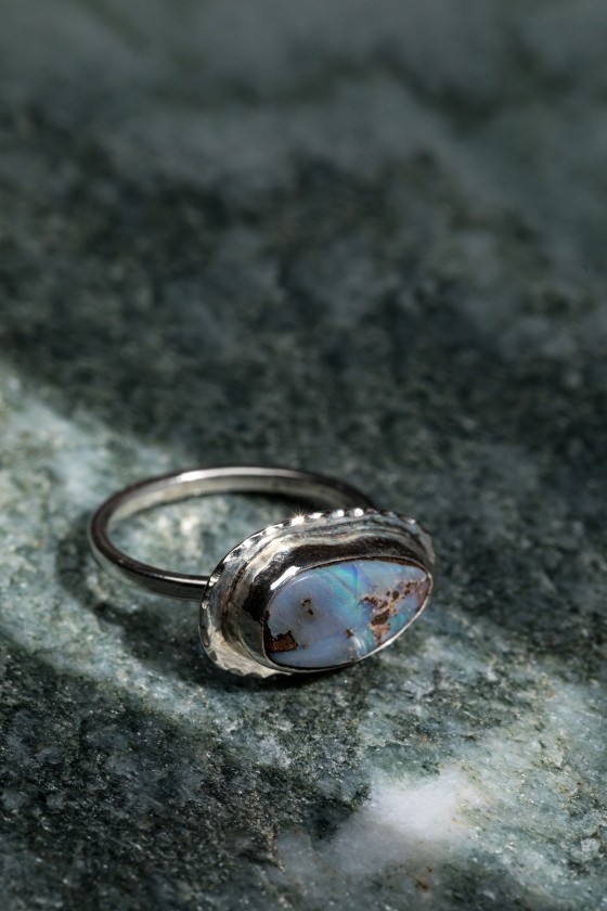 Ασημένιο δαχτυλίδι με φυσικό οπάλιο Αυστραλίας
