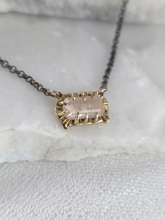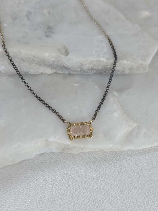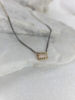 Ένα ξεχωριστό και σύγχρονο κόσμημα, το οποίο συνδυάζει τη γοητεία του λίθου με μια μοντέρνα αισθητική. Είναι κατασκευασμένο από χρυσό Κ14 και συνδυασμένο με οξειδωμένη αλυσίδα από ασήμι 925. Στο κέντρο του δεσπόζει ένα τοπάζι, αιχμαλωτίζοντας το φως με ένα μαγικό τρόπο. Φορέστε το για να θυμάστε μια ξεχωριστή στιγμή, μια υπόσχεση, ή απλώς για να νιώθετε τη μαγεία της κάθε μέρας. Είναι ένα κόσμημα που ξεπερνά τις τάσεις, μένοντας πάντα επίκαιρο.