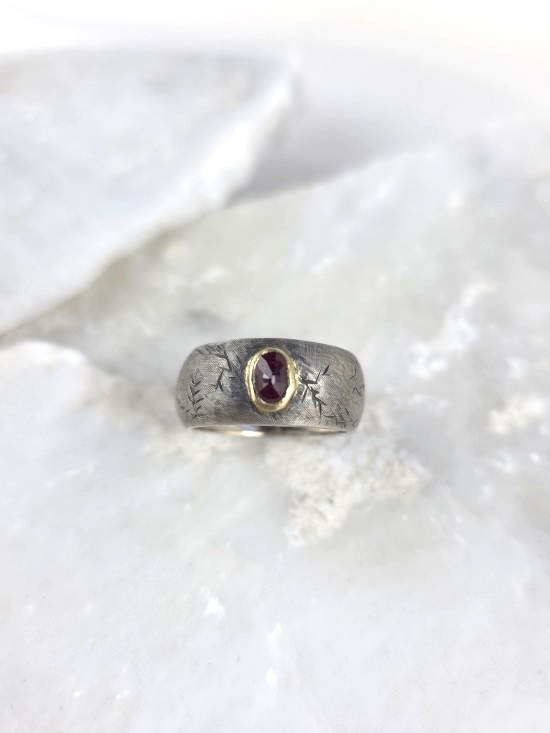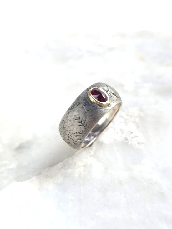 Διαχρονικό δαχτυλίδι σε ασήμι 925 και χρυσό Κ14, με φυσικό ρουμπίνι.