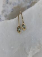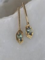 Αναδείξτε το στυλ σας με αυτά τα διακριτικά και κομψά σκουλαρίκια από χρυσό Κ14, με φυσικά γαλαζοπράσινα ζαφείρια Μαδαγασκάρης. Είναι ιδανικά για καθημερινή χρήση, καθώς η minimal αισθητική τους συνδυάζεται εύκολα με κάθε ντύσιμο, προσθέτοντας μια πινελιά πολυτέλειας και γοητείας.