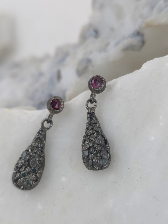 Αυτά τα σκουλαρίκια από ασήμι 925 με φυσικά πράσινα και κόκκινα ζαφείρια, είναι ιδανικά για να προσθέσουν μια πινελιά vintage γοητείας και χρώματος σε κάθε εμφάνιση, είτε πρόκειται για καθημερινή χρήση είτε για μια ιδιαίτερη περίσταση.