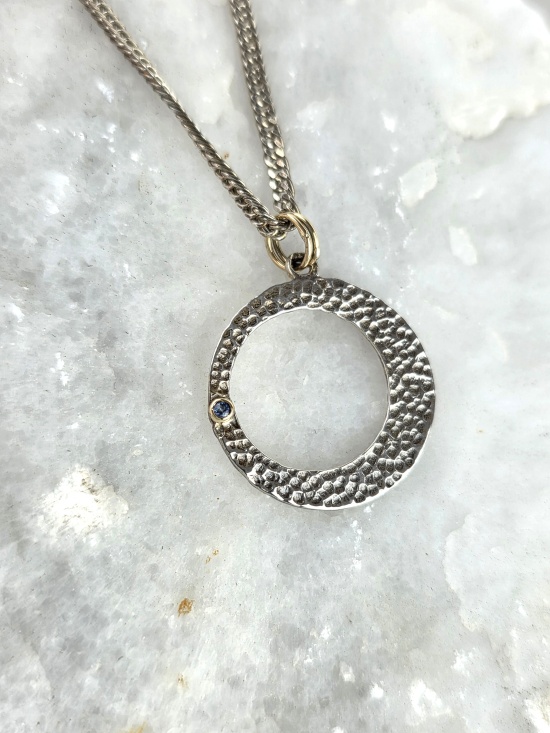 Σφυρήλατο κρεμαστό από ασήμι 925 και χρυσό Κ14, με διακριτικό φυσικό μπλε ζαφείρι.
