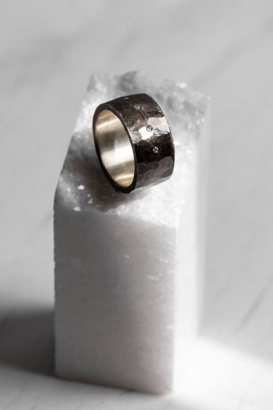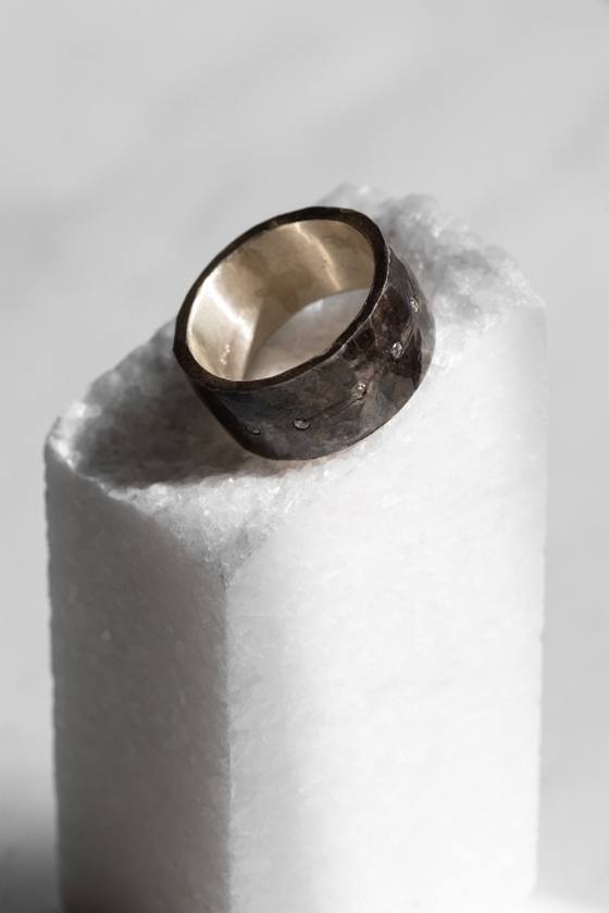 Φαρδυά βέρα με σφυρήλατη όψη και μικρά ζιργκόν.