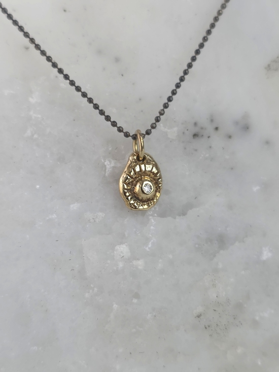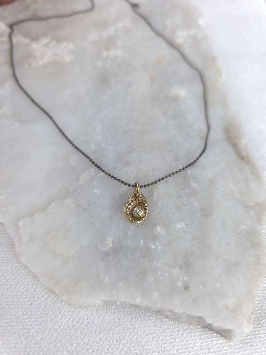 Χειροποίητο κρεμαστό κατασκευασμένο από χρυσό Κ14, με φυσικό διαμάντι. Συνοδεύεται από οξειδωμένη αλυσίδα από ασήμι 925.
