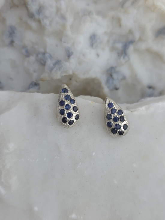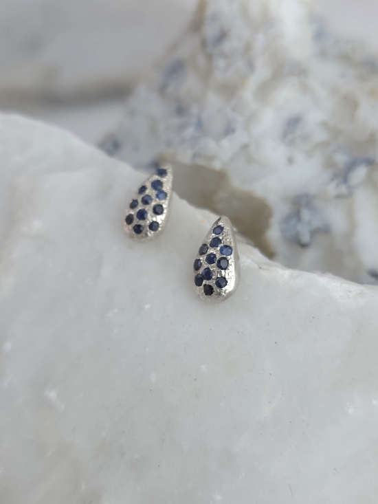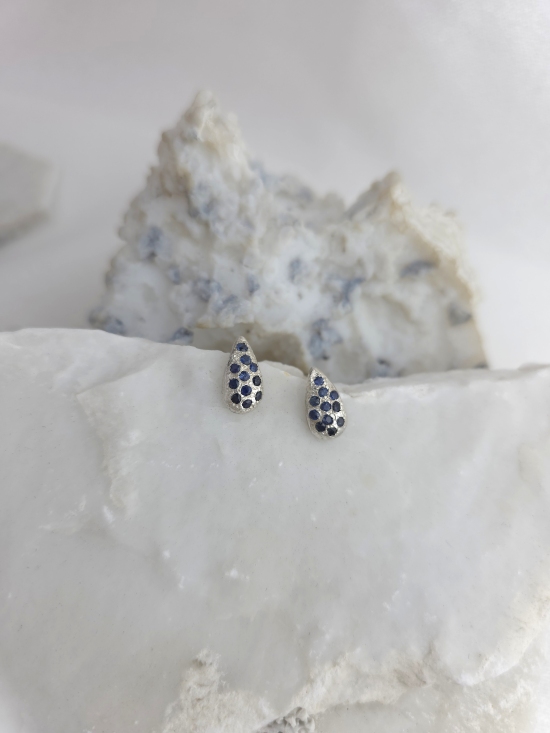 Εντυπωσιακά σκουλαρίκια σε σχήμα δάκρυ από ασήμι 925 διακοσμημένα από μικρά φυσικά ζαφείρια. Ιδανικά για εσάς που αγαπάτε την πολυτέλεια.