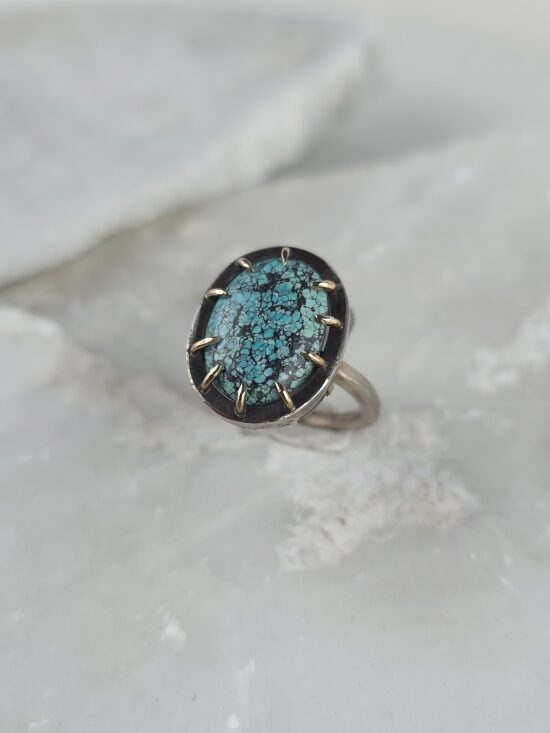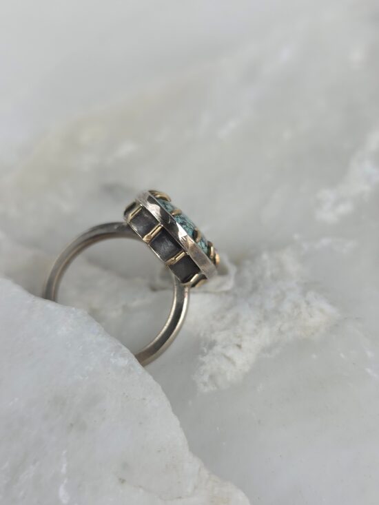 Δαχτυλίδι σε ασήμι 925 και χρυσό Κ14, με εντυπωσιακή πέτρα τιρκουάζ.