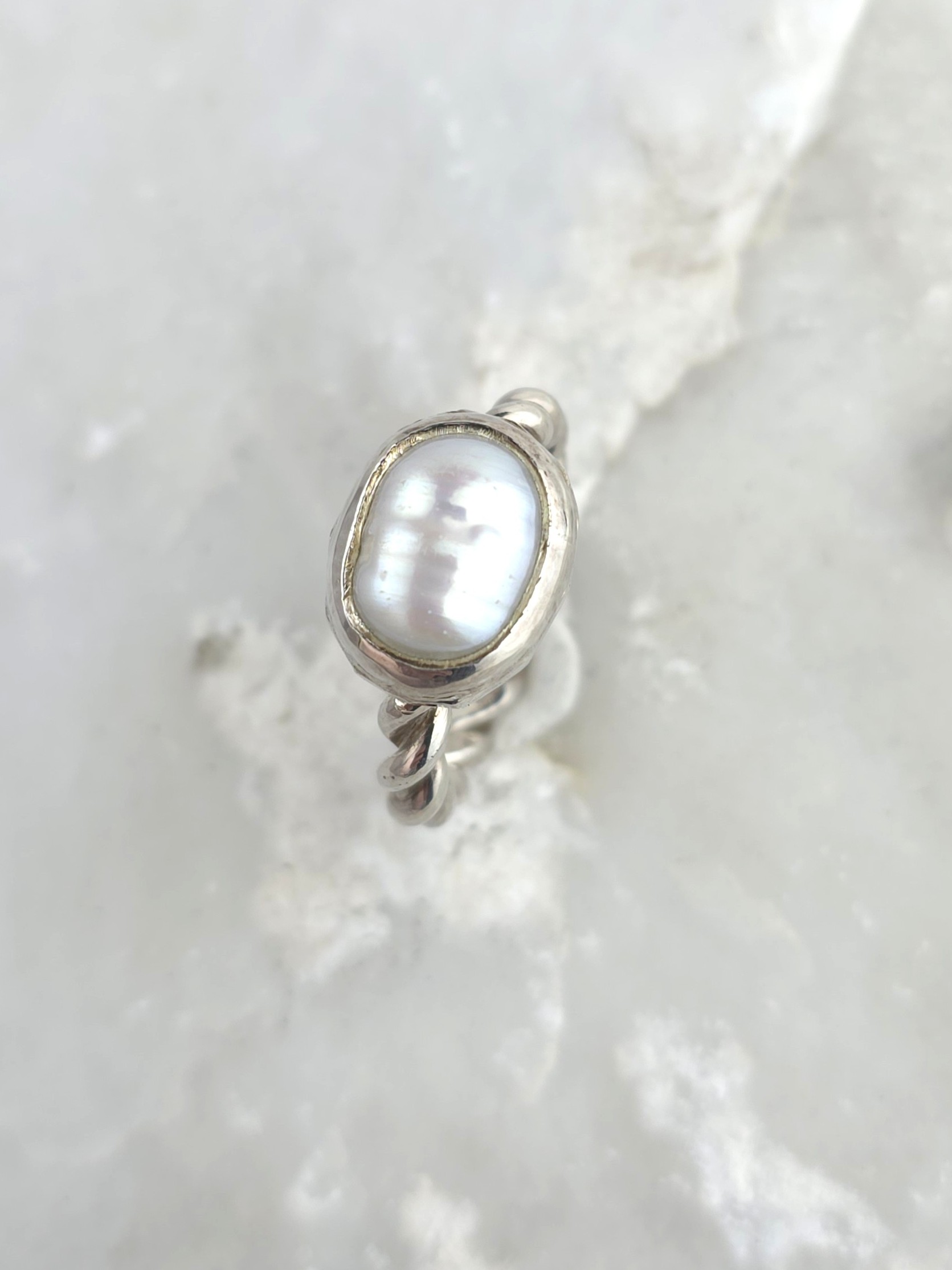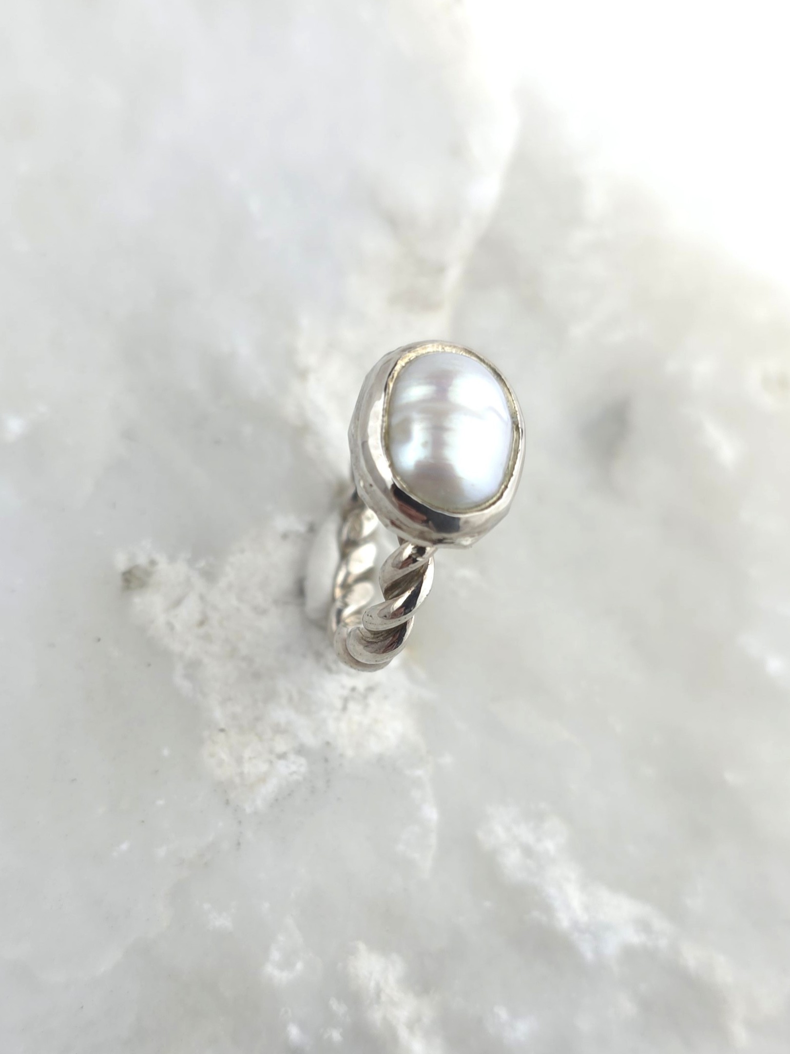 Μοναδικό χειροποίητο δαχτυλίδι από ασήμι 925 με φυσικό μπαρόκ μαργαριτάρι.