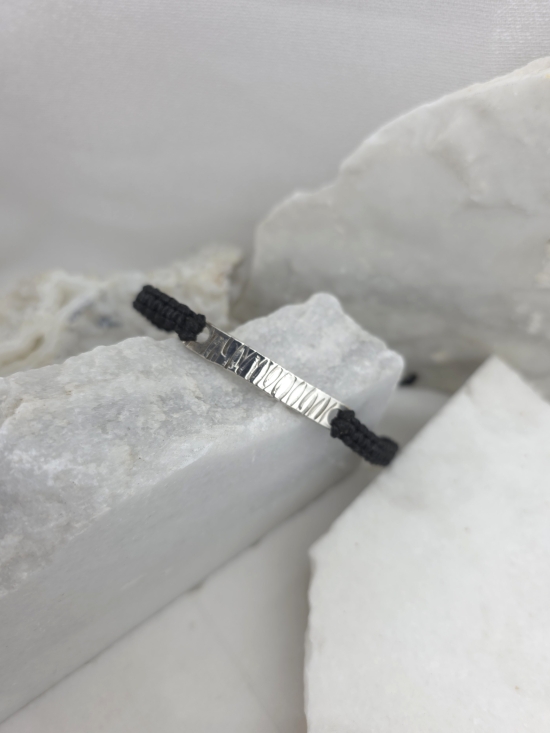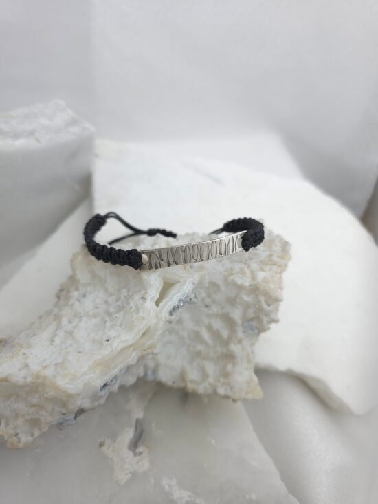 Χειροποίητο unisex βραχιόλι από ασήμι 925, με μαύρο κορδόνι αυξομείωσης.