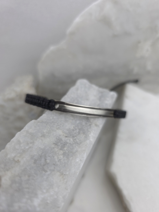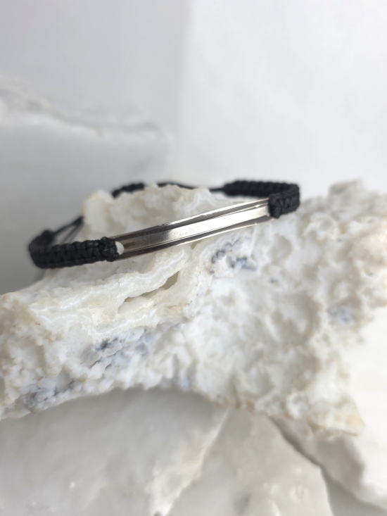 Χειροποίητο unisex βραχιόλι από ασήμι 925, με μαύρο κορδόνι αυξομείωσης.
