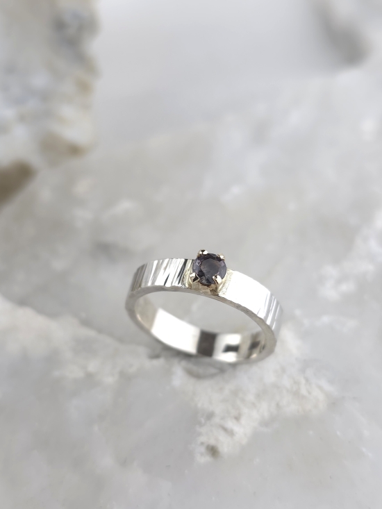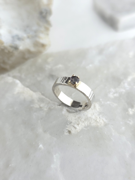 Εντυπωσιακό δαχτυλίδι από ασήμι 925 και χρυσό Κ14, με φυσικό ζαφείρι στην απόχρωση του καπνού.